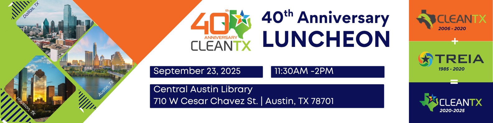 Join us in honoring 40 years of accelerating the growth of Cleantech and Renewable energy in Texas and excellence in renewable energy. We are thrilled to announce the 40th anniversary of CleanTX. The celebration will be a luncheon at the Central Austin Library on September 23, 2025, and we hope you will help us honor the legacy, share the story, and learn about the contributions of the founders and leaders of the only Texas-wide nonprofit organization advancing cleantech and renewable energy.