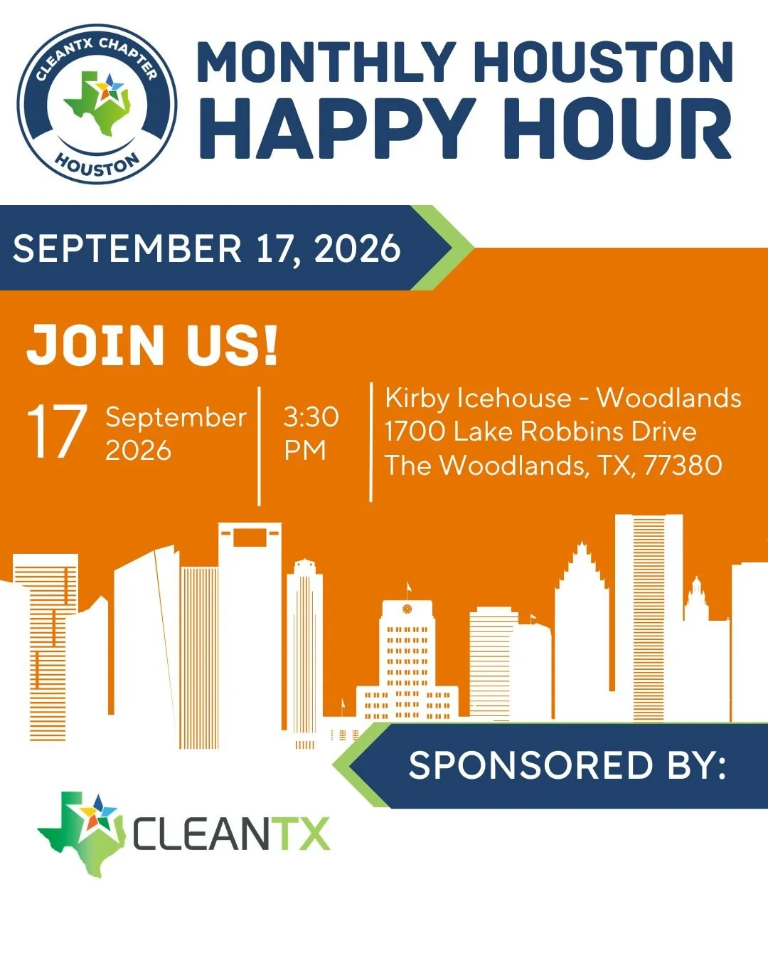 Join us at our CleanTX Houston Chapter Happy Hour on September 17 May 21, from 3:30β6 PM at Kirby Ice House The Woodlands (1700 Lake Robbins Drive, The Woodlands TX 77380, USA) π